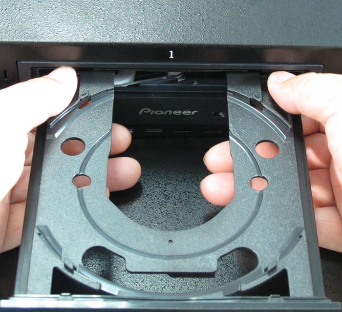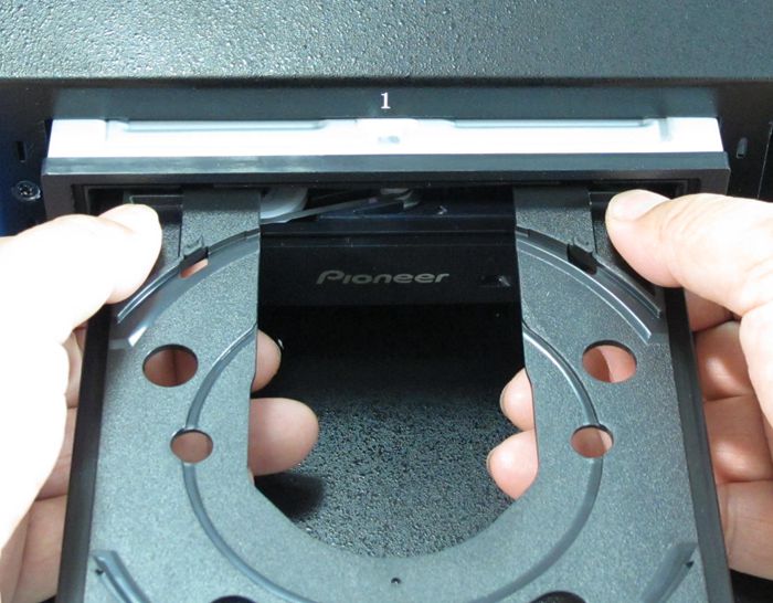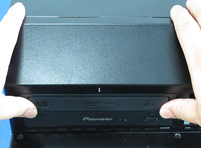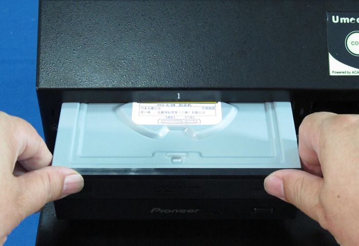 Pictured above is the hand gently pulling the optical drive tray, thus pulling out the writerr. See the specific operation of the writer pull operation video demo!