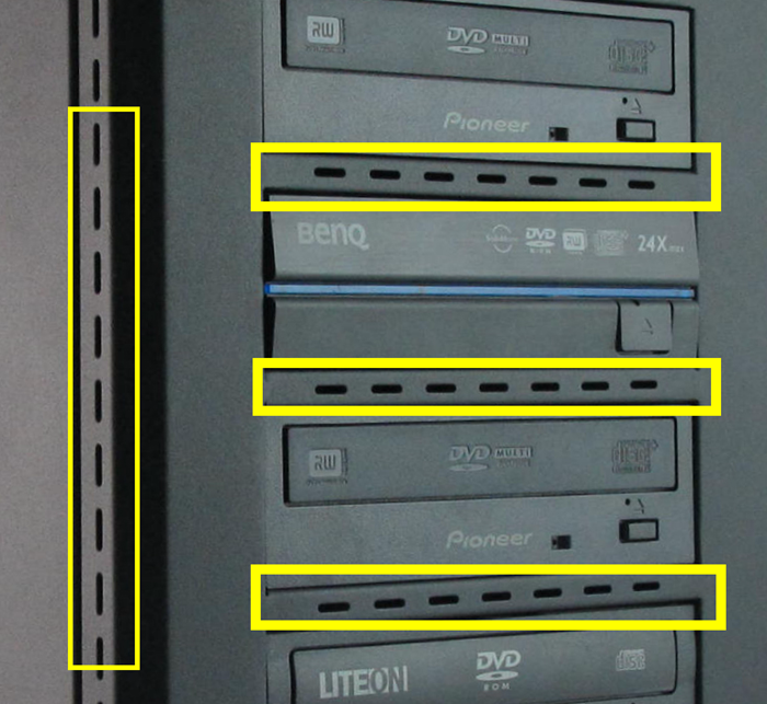 The picture above shows the process of inserting all the DVD writers at the same time.